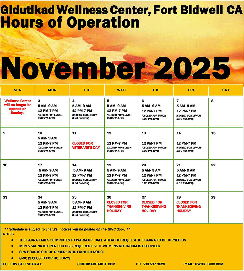 MISSION STATEMENT- To provide all Northern Paiute Numa Gidutikad Band with opportunities for self-sufficiency through economic development by promoting education and workforce development, well-being, and historical preservation to integrate our cultural values and beliefs into our daily lives for future generations.